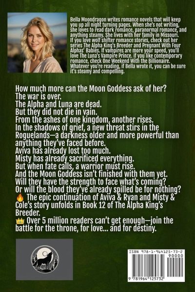 How much more can the Moon Goddess ask of her? The war is over. The Alpha and Luna are dead. But they did not die in vain. From the ashes of one kingdom, another rises. In the shadows of grief, a new threat stirs in the Roguelands-a darkness older and more powerful than anything they've faced before. Aviva has already lost too much. Misty has already sacrificed everything. But when fate calls, a warrior must rise. And the Moon Goddess isn't finished with them yet. Will they have the strength to face what's coming? Or will the blood they've already spilled be for nothing? ¿¿¿¿ The epic continuation of Aviva & Ryan and Misty & Cole's story unfolds in Book 12 of The Alpha King's Breeder. ¿¿¿¿ Over 5 million readers can't get enough-join the final battle for the throne, for love... and for destiny.