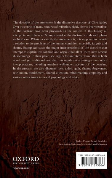 The concept of the atonement is one of the defining doctrine of Christianity. Over the course of many centuries, theologians, church forefathers, philosophers and more have proposed a huge expanse of interpretations of Christ's sacrifice for humanity, each different to the next. In this ambitious study, Eleonore Stump uses the context of this history of interpretation to reconsider the doctrine afresh with philosophical care. Whatever exactly the atonement is, it is supposed to include a solution to the problems of the human condition, especially its guilt and shame. Stump canvasses the major interpretations of the doctrine, highlighting their shortcomings as an explanation for this solution. In their place, she argues for an interpretation that is both novel whilst still using traditional theology, including Anselm's well-known account of the doctrine. Atonement is a rich exploration of the doctrine and all that it covers: love, union, guilt, shame, forgiveness, retribution, punishment, shared attention, mind-reading, empathy, and various other issues in moral psychology and ethics.