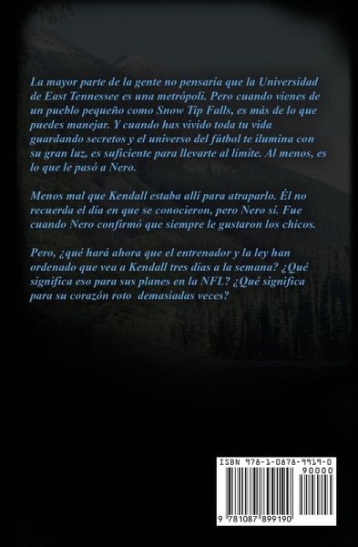 NERO La mayor parte de la gente no pensaría que la Universidad de East Tennessee es una metrópoli. Pero cuando vienes de un pueblo pequeño como Snow Tip Falls, es más de lo que puedes manejar. Y cuando has vivido toda tu vida guardando secretos y el universo del fútbol te ilumina con su gran luz, es suficiente para llevarte al límite. Al menos, es lo que me pasó a mí. Ha sido bueno que Kendall estuviera allí para atraparme. Él no recuerda el día en que nos conocimos, pero yo sí. Fue cuando confirmé lo que siempre había pensado: que me gustan los chicos. Pero, ¿qué hago ahora que el entrenador y la ley han ordenado que vea a Kendall tres días a la semana? ¿Qué significa eso para mis planes en la NFL? ¿Qué significa para mi corazón roto demasiadas veces? KENDALL No me gustan los jugadores de fútbol. Hicieron de mi vida un infierno cuando iba a la escuela secundaria. Resulta que gay y raro no son una buena combinación. Ahora, en la Universidad, mi sueño es ayudar a otros como terapeuta. Comenzaré convirtiéndome en consejero estudiantil. Entonces, tal vez no debería haber dibujado a un jugador de fútbol colgado de una soga en el Test de empatía de mi profesor. De todas maneras, me dijo que tengo que enfrentarme a mi obsesión para conseguir lo que quiero. Así que ahora estoy aconsejando al peor de los peores, Nero Roman, un jugador de fútbol... que también es el chico más sexy, digno de babearse y pueblerino que he conocido. Resulta que hay más de lo que esperaba bajo su apariencia ruda. ¿Y ahora tengo que descubrir cómo dejar de sentir algo por mi guapísimo cliente? Nota: Este libro forma parte de la colección "Amor es Amor", del mismo autor, y está disponible como un romance picante en "Mi debilidad", un romance clásico y tierno en "Enamorándome de mi debilidad", un romance tórrido de hombres lobo en "Lobo atormentado" y un romance entre hombres en "Atraído por problemas".