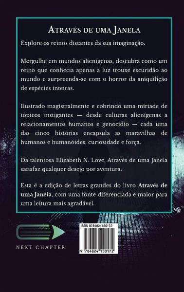 Explore os reinos distantes da sua imaginação. Mergulhe em mundos alienígenas, descubra como um reino que conhecia apenas a luz trouxe escuridão ao mundo e surpreenda-se com o horror da aniquilição de espécies inteiras. Ilustrado magistralmente e cobrindo uma míriade de tópicos instigantes - desde culturas alienígenas a relacionamentos humanos e genocídio - cada uma das cinco histórias encapsula as maravilhas de humanos e humanóides, curiosidade e força. Da talentosa Elizabeth N. Love, Através de uma Janela satisfaz qualquer desejo por aventura. Esta é a edição de letras grandes do livro Através de uma Janela, com uma fonte diferenciada e maior para uma leitura mais agradável.