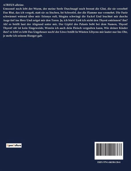 Ein düsteres Schicksal entfaltet sich in der antiken Welt, als die Brüder Atreus und Thyest in einen erbitterten Machtkampf verwickelt werden. In einer Zeit, in der Ehre und Rache die höchsten Tugenden sind, entfaltet sich eine Tragödie von epischem Ausmaß. Die Geschichte spielt in der mythischen Stadt Mykene, einem Ort, der von Intrigen und Verrat geprägt ist. Atreus, der König von Mykene, ist entschlossen, seine Herrschaft zu festigen, während sein Bruder Thyest nach Rache für vergangene Ungerechtigkeiten dürstet. Diese antike Tragödie, die von Christian Felix Weiße meisterhaft erzählt wird, erforscht die dunklen Abgründe menschlicher Emotionen und die zerstörerische Kraft von Hass und Eifersucht. Die zentralen Themen des Werkes sind Macht, Verrat und die unaufhaltsame Spirale der Rache. Weiße gelingt es, die Leser in eine Welt zu entführen, in der die Götter das Schicksal der Menschen lenken und die Grenzen zwischen Gut und Böse verschwimmen. Die Charaktere sind gefangen in einem Netz aus Lügen und Täuschungen, das sie unweigerlich in den Abgrund zieht. Die Tragödie von Atreus und Thyest ist nicht nur eine Geschichte über familiäre Zwistigkeiten, sondern auch eine tiefgründige Untersuchung der menschlichen Natur und der Konsequenzen von unkontrolliertem Ehrgeiz. Durch die packende Erzählweise und die eindringliche Darstellung der Charaktere bietet das Buch eine intensive Auseinandersetzung mit den moralischen Dilemmata, die die Protagonisten heimsuchen. Die Leser werden in eine vergangene Welt versetzt, die dennoch zeitlose Fragen aufwirft: Wie weit darf man gehen, um seine Ziele zu erreichen? Und welchen Preis ist man bereit, dafür zu zahlen? Diese antike Tragödie lehrt uns, die zerstörerische Kraft von Rache und Machtstreben zu erkennen und die Bedeutung von Vergebung und Versöhnung zu schätzen.