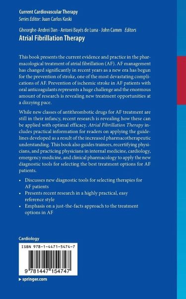 New guidelines have emerged as a result of new mechanisms for initiation and perpetuation for pharmacotherapy to cure AF and trials with new classes of antithrombotic drugs are ongoing. The treatment of AF is still in its infancy, but recent research is revealing how it can be applied with optimal efficacy. This book assists trainees, recertifying physicians, practicing physicians and other professional staff in internal medicine, cardiology, emergency medicine, and clinical pharmacology to apply new diagnostic tools for selecting the best treatment options for AF patients.