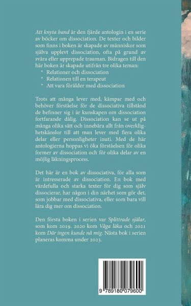 Att knyta band är den fjärde antologin i en serie av böcker om dissociation. De texter och bilder som finns i boken är skapade av människor som själva upplevt dissociation, ofta på grund av svåra eller upprepade trauman. Bidragen till den här boken är skapade utifrån tre olika teman: * Relationer och dissociation * Relationen till en terapeut * Att vara förälder med dissociation Trots att många lever med, kämpar med och behöver förståelse för de dissociativa tillstånd de befinner sig i är kunskapen om dissociation fortfarande dålig. Dissociation kan se ut på många olika sätt och innebära allt från overklig-hetskänslor till att man lever med flera olika delar eller personligheter inuti. Med de här antologierna hoppas vi öka förståelsen för olika former av dissociation och för olika delar av en möjlig läkningsprocess. Det här är en bok av dissociativa, för alla som är intresserade av dissociation. En bok med värdefulla och starka texter för dig som själv dissocierar, har någon i din närhet som gör det, som jobbar med dissociativa, eller som bara vill lära dig mer om dissociation. Den första boken i serien var Splittrade själar, som kom 2019. 2020 kom Våga läka och 2021 kom Där ingen kunde nå mig. Nästa bok i serien planeras komma under 2023. Böckerna ges ut av föreningen Om dissociation.