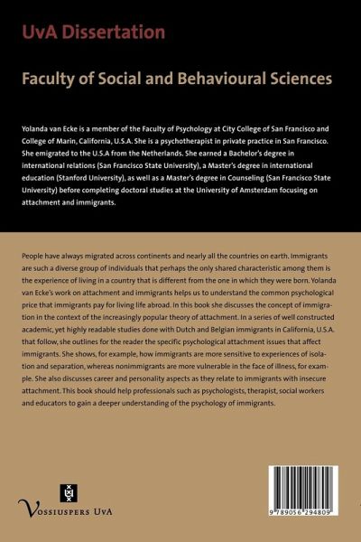 In Attachment and Immigrants Yolanda van Ecke frames the experience of immigration in the context of the increasingly popular theory of attachment. She outlines for the reader the specific psychological attachment issues that affect immigrants. Immigrants have unresolved attachment more often than nonimmigrants, and are more sensitive to experiences of isolation and separation, whereas nonimmigrants are more vulnerable in the face of illness. She also discusses career and personality aspects as they relate to immigrants with insecure attachment and provides suggestions for career counseling. This book should help professionals such as psychologists, therapist, social workers and educators to gain a deeper understanding of the psychology of immigrants.