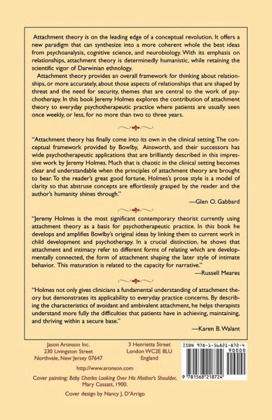 Attachment theory is on the leading edge of a conceptual revolution. It offers a new paradigm that can synthesize into a more coherent whole the best ideas from psychoanalysis, cognitive science, and neurobiology. With its emphasis on relationships, attachment theory is determinedly humanistic, while retaining the scientific vigor of Darwinian ethnology. Attachment theory provides an overall framework for thinking about relationships, or more accurately, about those aspects of relationships that are shaped by threat and the need for security, themes that are central to the work of psychotherapy. In this book Jeremy Holmes explores the contribution of attachment theory to everyday psycho-therapeutic practice where patients are usually seen once weekly, or less, for no more than two to three years.