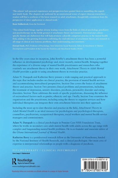 Adam N. Danquah and Katherine Berry present a wide-ranging and practical approach to the topic which includes studies on clinical practice, the provision of mental health services and accommodating intercultural perspectives. Section One covers the basics of attachment theory and practice. Section Two presents clinical problems and presentations including, among others, the treatment of depression, anxiety disorders, psychosis, personality disorder and eating disorders. Section Three addresses the needs of specific populations, discussing the influence of sociocultural factors like gender, ethnicity and age. Finally, Section Four examines the organisation and the practitioner, including using the theory to organise services and how individual therapists can integrate their own attachment histories into their approach.