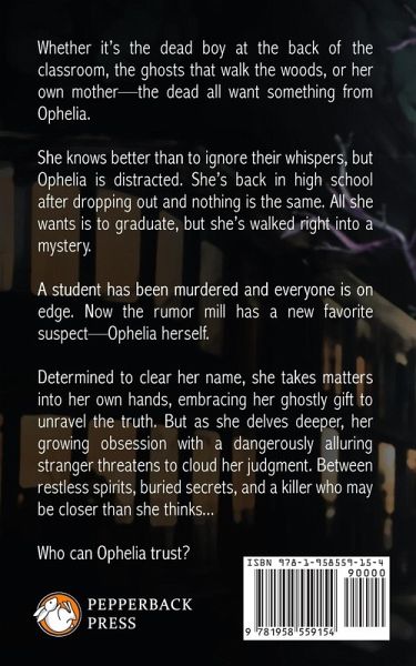 Whether it's the dead boy at the back of the classroom, the ghosts that walk the woods, or her own mother--the dead all want something from Ophelia. She knows better than to ignore their whispers, but Ophelia is distracted. She's back in high school after dropping out and nothing is the same. All she wants is to graduate, but she's walked right into a mystery. A student has been murdered and everyone is on edge. Now the rumor mill has a new favorite suspect-Ophelia herself. Determined to clear her name, she takes matters into her own hands, embracing her ghostly gift to unravel the truth. But as she delves deeper, her growing obsession with a dangerously alluring stranger threatens to cloud her judgment. Between restless spirits, buried secrets, and a killer who may be closer than she thinks... Who can Ophelia trust?