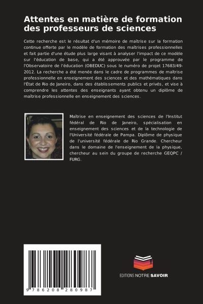 Cette recherche est le résultat d'un mémoire de maîtrise sur la formation continue offerte par le modèle de formation des maîtrises professionnelles et fait partie d'une étude plus large visant à analyser l'impact de ce modèle sur l'éducation de base, qui a été approuvée par le programme de l'Observatoire de l'éducation (OBEDUC) sous le numéro de projet 17683/49-2012. La recherche a été menée dans le cadre de programmes de maîtrise professionnelle en enseignement des sciences et des mathématiques dans l'État de Rio de Janeiro, dans des établissements publics et privés, et vise à comprendre les attentes des enseignants ayant obtenu un diplôme de maîtrise professionnelle en enseignement des sciences.