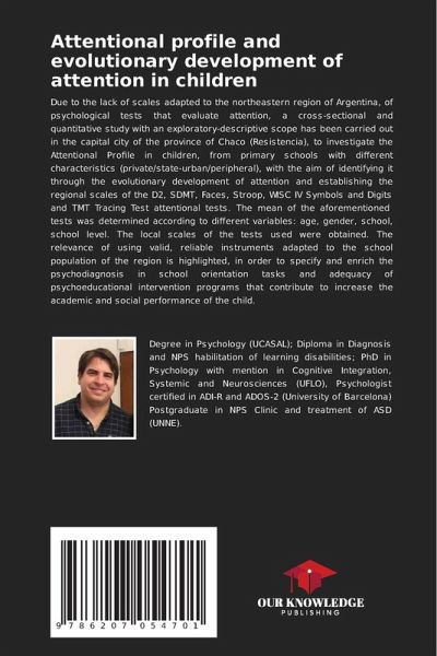 Due to the lack of scales adapted to the northeastern region of Argentina, of psychological tests that evaluate attention, a cross-sectional and quantitative study with an exploratory-descriptive scope has been carried out in the capital city of the province of Chaco (Resistencia), to investigate the Attentional Profile in children, from primary schools with different characteristics (private/state-urban/peripheral), with the aim of identifying it through the evolutionary development of attention and establishing the regional scales of the D2, SDMT, Faces, Stroop, WISC IV Symbols and Digits and TMT Tracing Test attentional tests. The mean of the aforementioned tests was determined according to different variables: age, gender, school, school level. The local scales of the tests used were obtained. The relevance of using valid, reliable instruments adapted to the school population of the region is highlighted, in order to specify and enrich the psychodiagnosis in school orientation tasks and adequacy of psychoeducational intervention programs that contribute to increase the academic and social performance of the child.