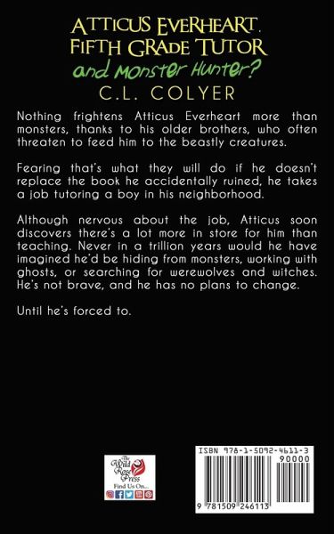 Nothing frightens Atticus Everheart more than monsters, thanks to his older brothers, who often threaten to feed him to the beastly creatures. Fearing that's what they will do if he doesn't replace the book he accidentally ruined, he takes a job tutoring a boy in his neighborhood. Although nervous about the job, Atticus soon discovers there's a lot more in store for him than teaching. Never in a trillion years would he have imagined he'd be hiding from monsters, working with ghosts, or searching for werewolves and witches. He's not brave, and he has no plans to change. Until he's forced to.