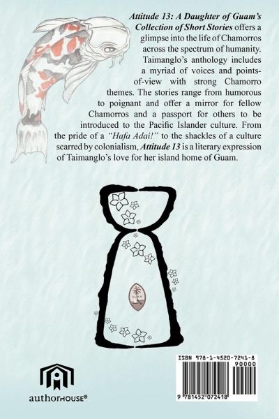 Attitude 13: A Daughter of Guam's Collection of Short Stories offers a glimpse into the life of Chamorros across the spectrum of humanity. Taimanglo's anthology includes a myriad of voices and points-of-view with strong Chamorro themes. The stories range from humorous to poignant and offer a mirror for fellow Chamorros and a passport for others to be introduced to the Pacific Islander culture. From the pride of a "Hafa Adai!" to the shackles of a culture scarred by colonialism, Attitude 13 is a literary expression of Taimanglo's love for her island home of Guam.