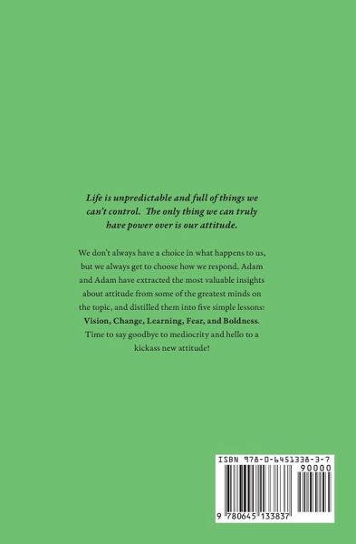 Life is unpredictable and full of things we can't control. The only thing we can truly have power over is our attitude. We don't always have a choice in what happens to us, but we always get to choose how we respond. Adam and Adam have extracted the most valuable insights about attitude from some of the greatest minds on the topic, and distilled them into five simple lessons: Vision, Change, Learning, Fear, and Boldness. Time to say goodbye to mediocrity and hello to a kickass new attitude! Here's what you can expect:Vision: The first step in getting to where you want to go is knowing where you want to go in the first place. Over the next few years, you're going to get somewhere... but unless you set a bit of a vision for yourself, the place you end up may not be the place you wanted to go. Change: Having crafted your vision, you might realise that there's a little bit of a gap between where you are now and where you want to be. In order to close that gap, to move closer towards the person you want to be, you're going to need to change. Change can be scary. It means moving outside your comfort zone. But if you want to improve, change is going to be an inevitable part of the journey. Learning: As you're working toward your vision and making changes in your life, you are going to have to try new things. Things you've never done before, things you never thought you could do, but things that are vital to achieving your goals. There are times when we must learn new things, but most of us don't have an intentional approach to learning. Fear: Everything so far might sound pretty exciting. But it might also sound a little scary. Thinking about your future is scary, change is scary, trying new things is scary. Lesson 4 provides new ways to reframe fear into something that will help propel you forward rather than hold you back. Boldness: The last piece of the Attitude puzzle is that little bit of grunt, that little bit of scrappiness, that brash confidence to just get out there and have a crack. In spite of fears, in spite of not knowing exactly what to do or how to do it, a little bit of boldness might be the last thing you need to get you off the sidelines and into the arena.