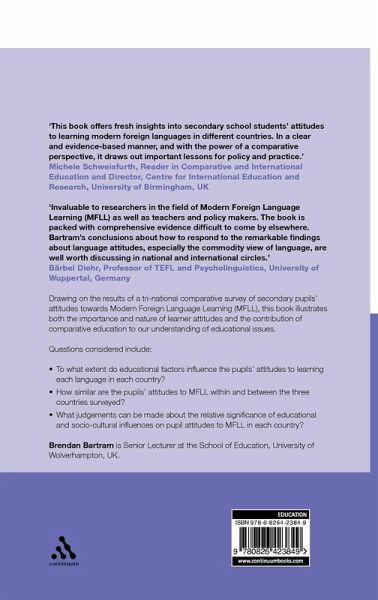Drawing on the results of a tri-national comparative survey of secondary pupils' attitudes towards Modern Foreign Language Learning (MFLL), this book illustrates both the importance and nature of learner attitudes and the contribution of comparative education to our understanding of educational issues. Questions considered include: What is the nature of the pupils' attitudes to the educational dimensions of learning French, German and English in each country? To what extent do educational factors influence the pupils' attitudes to learning each language in each country? How similar are the pupils' attitudes to MFLL within and between the three countries? What judgements can be made about the relative significance of educational and socio-cultural influences on pupil attitudes to MFLL in each country?