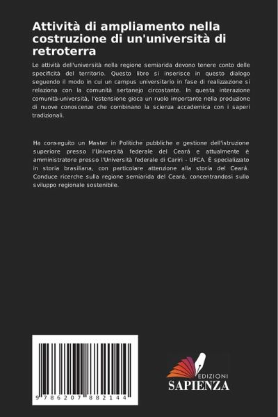 Le attività dell'università nella regione semiarida devono tenere conto delle specificità del territorio. Questo libro si inserisce in questo dialogo seguendo il modo in cui un campus universitario in fase di realizzazione si relaziona con la comunità sertanejo circostante. In questa interazione comunità-università, l'estensione gioca un ruolo importante nella produzione di nuove conoscenze che combinano la scienza accademica con i saperi tradizionali.