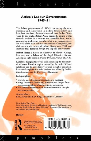 The Labour governments of 1945-51 are among the most important and controversial in modern British history, and have been the focus of extensive research over the last fifteen years. In this study, Robert Pearce makes the results of this research available in a concise and accessible form, whilst encouraging students to formulate their own interpretations. He looks at the main political personalities of the period, sets their work in the context of Labour history since 1900, and examines their domestic, foreign and imperial achievements.