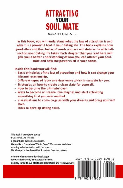 When Was The Last Time You Were In A Relationship? Are you always in a one-sided love relationship?Going on endless blind dates?Have you been using Tinder for 3 years straight?Discover The Law Of Attraction?In this book, you will understand what the law of attraction is and why it is a powerful tool in your dating life. The book explains how good vibes and the choice of words you use will determine which direction your dating life takes. Each chapter that you read here will give you a better understanding of how you can attract your soulmate and how the power is all in your hands. Inside this book you will find: - Basic principles of the law of attraction and how it can change your life and relationship. - Different types of lover and determine which is suitable for you. - Strategies on how to create a clean slate for yourself. - How to become the ultimate lover. - Ways to become an insane love magnet and start attracting everything that you ever wanted. - Visualizations to come to grips with your dreams and bring yourself love. Attention! Law of attraction is NOT for everyone!This book is not for people:- Who doesn't want to take actions in life- Who are not committed for a change- Who has given up on datingIf you are ready to learn about attracting your perfect soul mate,