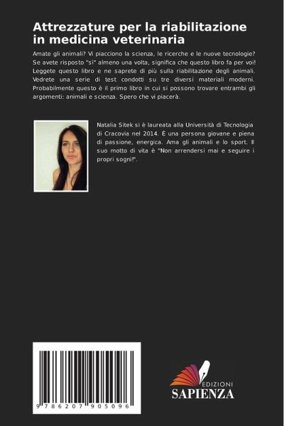 Amate gli animali? Vi piacciono la scienza, le ricerche e le nuove tecnologie? Se avete risposto "sì" almeno una volta, significa che questo libro fa per voi! Leggete questo libro e ne saprete di più sulla riabilitazione degli animali. Vedrete una serie di test condotti su tre diversi materiali moderni. Probabilmente questo è il primo libro in cui si possono trovare entrambi gli argomenti: animali e scienza. Spero che vi piacerà.