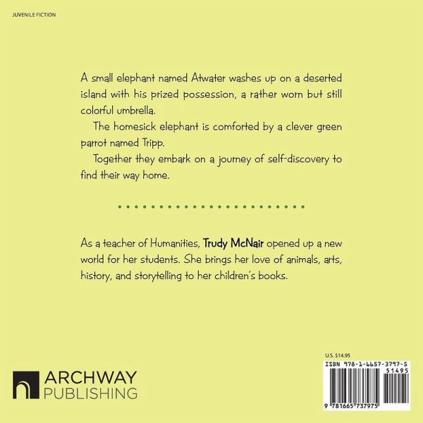 A small elephant named Atwater washes up on a deserted island with his prized possession, a rather worn but still colorful umbrella. The homesick elephant is comforted by a clever green parrot named Tripp. Together they embark on a journey of self-discovery to find their way home.