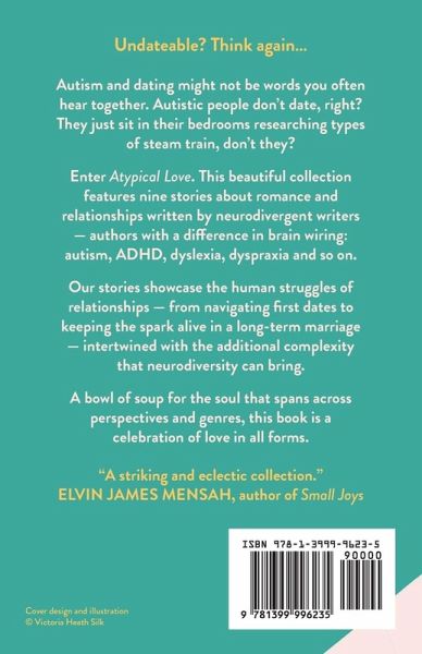 "A striking and eclectic collection." Elvin James Mensah, author of Small Joys "Chills of recognition mean I wish I'd had this book while coming of age." Kate Fox, writer, poet & broadcaster "In this anthology are some beautifully quirky neurodivergent stories; gems exploring the nuances of love and the human need for recognition, acceptance and for sharing joy." Colin Hambrook, founder & editor of Disability Arts Online Undateable? Think again... Autism and dating might not be words you often hear together. Autistic people don't date, right? Don't they reside in their bedrooms and research types of steam train? Enter Atypical Love. This beautiful collection features nine stories about romance and relationships written by neurodivergent writers - by neurodivergent we mean a difference in brain wiring: autism, ADHD, dyslexia, dyspraxia and so on. Our stories showcase the human struggles of relationships - from navigating first dates to keeping the spark alive in a long-term marriage - intertwined with the additional complexity that neurodiversity can bring. A bowl of soup for the soul that spans across perspectives and genres, Atypical Love is a celebration of love in all forms.