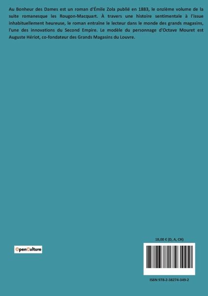 "Au Bonheur des Dames" est un roman d'Émile Zola, publié en 1883, qui s'inscrit dans la série des Rougon-Macquart. L'uvre explore l'évolution des grands magasins parisiens au XIXe siècle, symbolisé par "Au Bonheur des Dames", un établissement fictif inspiré du Bon Marché. Le roman suit le parcours de Denise Baudu, une jeune provinciale qui arrive à Paris avec ses frères après la mort de leurs parents. Elle trouve un emploi dans ce grand magasin, où elle est confrontée à la dureté du travail et à la compétition féroce entre employés. À travers le personnage de Denise, Zola illustre le changement social et économique de l'époque, marqué par l'industrialisation et la modernisation du commerce. Le magasin devient un microcosme de la société, où se jouent des luttes de pouvoir, des intrigues amoureuses et des conflits de classe. Denise, par sa persévérance et son intégrité, parvient à gravir les échelons et à s'imposer dans un monde dominé par les hommes, incarnant ainsi l'émancipation féminine. Le roman met également en lumière les conséquences de l'expansion des grands magasins sur les petits commerces traditionnels, qui peinent à survivre face à cette nouvelle concurrence. Zola dépeint avec minutie les innovations commerciales, telles que les soldes et la publicité, qui attirent une clientèle de plus en plus nombreuse et transforment les habitudes de consommation. "Au Bonheur des Dames" est une critique sociale qui interroge les valeurs de l'époque tout en célébrant le progrès et le changement. À travers une écriture naturaliste, Zola offre une fresque vivante et détaillée de la société parisienne, tout en posant un regard lucide sur les bouleversements économiques et sociaux de son temps.