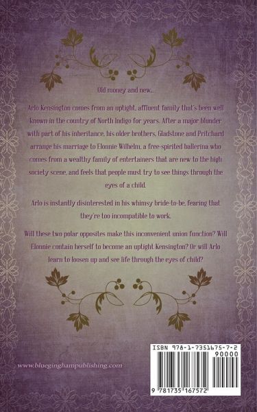 Old money and new... Arlo Kensington comes from an uptight, affluent family that's been well known in the country of North Indigo for years. After a major blunder with part of his inheritance, his older brothers, Gladstone and Pritchard arrange his marriage to Elonnie Wilhelm, a free-spirited ballerina who comes from a wealthy family of entertainers that are new to the high society scene, and feels that people must try to see things through the eyes of a child. Arlo is instantly disinterested in his whimsy bride-to-be, fearing that they're too incompatible to work. Will these two polar opposites make this inconvenient union function? Will Elonnie contain herself to become an uptight Kensington? Or will Arlo learn to loosen up and see life through the eyes of child?
