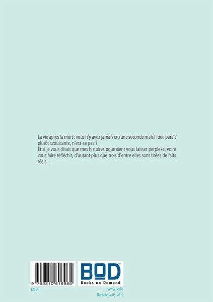 La vie après la mort : vous n'y avez jamais cru une seconde mais l'idée paraît plutôt séduisante, n'est-ce pas ? Et si je vous disais que mes histoires pourraient vous laisser perplexe, voire vous faire réfléchir, d'autant plus que trois d'entre elles sont tirées de faits réels...