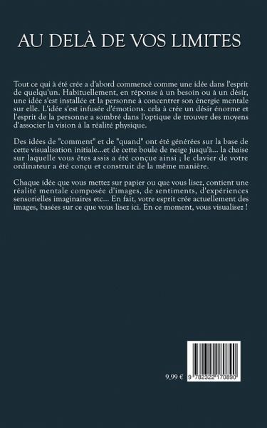 Chaque idée que vous mettez sur papier ou que vous lisez, contient une réalité mentale composée d'images, de sentiments, d'expériences sensorielles imaginaires etc... En fait, votre esprit crée actuellement des images, basées sur ce que vous lisez ici. En ce moment, vous visualisez !