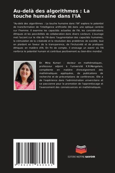 "Au-delà des algorithmes : La touche humaine dans l'IA" explore le potentiel de transformation de l'intelligence artificielle (IA) dans une optique centrée sur l'homme. Il examine les capacités actuelles de l'IA, les considérations éthiques et les possibilités de collaboration dans divers secteurs. L'ouvrage met l'accent sur le rôle de l'IA dans l'augmentation des capacités humaines, la stimulation de la créativité et la résolution des problèmes de société, tout en plaidant en faveur de la transparence, de l'inclusivité et de pratiques éthiques en matière d'IA. En fin de compte, il envisage un avenir où l'IA renforce le potentiel humain et contribue positivement au bien-être mondial.