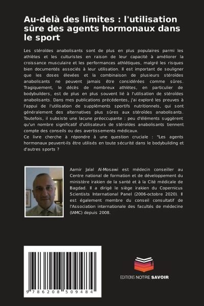 Les stéroïdes anabolisants sont de plus en plus populaires parmi les athlètes et les culturistes en raison de leur capacité à améliorer la croissance musculaire et les performances athlétiques, malgré les risques bien documentés associés à leur utilisation. Il est important de souligner que les doses élevées et la combinaison de plusieurs stéroïdes anabolisants ne peuvent jamais être considérées comme sûres. Tragiquement, le décès de nombreux athlètes, en particulier de bodybuilders, est de plus en plus souvent lié à l'utilisation de stéroïdes anabolisants. Dans mes publications précédentes, j'ai exploré les preuves à l'appui de l'utilisation de suppléments sportifs nutritionnels, qui sont généralement des alternatives plus sûres aux stéroïdes anabolisants. Toutefois, il subsiste une lacune préoccupante : peu d'éléments suggèrent qu'un nombre significatif d'utilisateurs de stéroïdes anabolisants tiennent compte des conseils ou des avertissements médicaux.Ce livre cherche à répondre à une question cruciale : "Les agents hormonaux peuvent-ils être utilisés en toute sécurité dans le bodybuilding et d'autres sports ?
