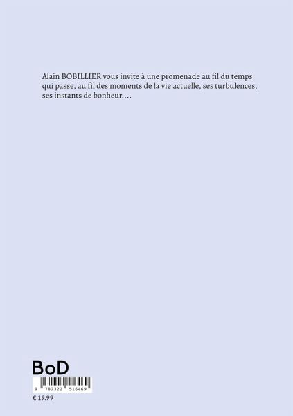 Alain BOBILLIER vous invite à une promenade au fil du temps qui passe, au fil des moments de la vie actuelle, ses turbulences, ses instants de bonheur....
