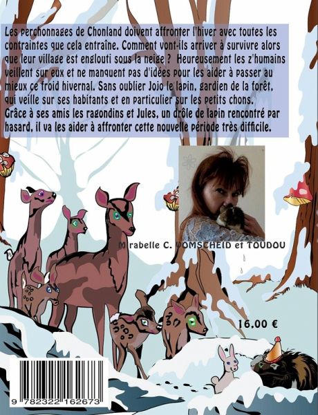Les perchonnages de Chonland doivent affronter l'hiver avec toutes les contraintes que cela entraîne. Comment vont-ils arriver à survivre alors que leur village est englouti sous la neige ? Heureusement les z'humains veillent sur eux et ne manquent pas d'idées pour les aider à passer au mieux ce froid hivernal. Sans oublier Jojo le lapin, gardien de la forêt, qui veille sur ses habitants et en particulier sur les petits chons. Grâce à ses amis les ragondins et Jules, un drôle de lapin rencontré par hasard,il va les aider à affronter cette nouvelle période très difficile.