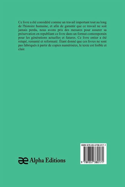 Au pays de Sylvie, a été considérée comme importante tout au long de l'histoire de l'humanité. Dans un effort pour s'assurer que ce travail ne soit jamais perdu, nous avons pris des mesures pour assurer sa préservation en republiant ce livre dans un format moderne pour les générations actuelles et futures. Ce livre complet a été retapé, remanié et reformaté. Comme ces livres ne sont pas des scans des publications originales des auteurs, le texte est lisible et clair.