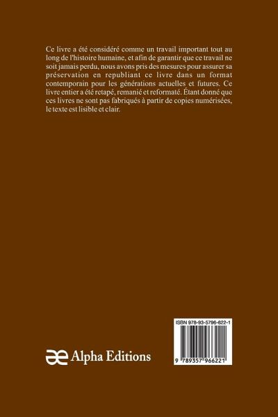 Au pays des pardons, un livre classique, a été considéré comme important tout au long de l'histoire de l'humanité, et pour que cet ouvrage ne soit jamais oublié, chez Alpha Editions, nous avons fait des efforts pour sa préservation en rééditant ce livre dans un format moderne pour les générations présentes et futures. Tout ce livre a été reformaté, retapé et conçu. Ces livres ne sont pas constitués de copies numérisées de leur ¿uvre originale et le texte est donc clair et lisible.