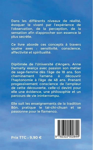 Dans les différents niveaux de réalité, évoquer le vivant par l'expérience de l'observation, de la perception, de la sensation afin d'approcher son essence la plus secrète.Ce livre aborde ces concepts à travers quatre axes : sensitivité, conscience, affectivité et spiritualité.