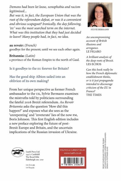 Demons had been let loose, xenophobia and racism legitimised... But was it, in fact, the European Union that was the root of the referendum defeat, or was it a convenient and obvious scapegoat? Ironically, the day following, 'EU' was the most searched term on the internet. What was this institution that they had just decided to leave? Many people had, in fact, no idea. au revoir: (French) goodbye for the present; until we see each other again. Britannia: (Latin) a province of the Roman Empire to the north of Gaul. Is it goodbye to the eu forever for Britain? Has the good ship Albion sailed into an oblivion of its own making? From her unique perspective as former French ambassador to the UK, Sylvie Bermann examines the mistruths told by politicians surrounding the fateful 2016 Brexit referendum. Au Revoir Britannia asks the question 'How did this happen?' and exposes what she sees as the 'unrepenting' and 'inveterate' lies of the now pm, Boris Johnson. This first English edition includes a new preface exploring the future of post-Brexit Europe and Britain, and the uncertain implications of the Russian invasion of Ukraine.