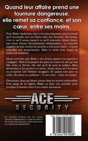 Pour Blake Anderson, rien n'est plus important que le travail qu'il accomplit avec ses frères chez Ace Sécurité. Du moins, c'est ce qu'il pense jusqu'à ce qu'il rencontre Alexis Grant, une jeune femme farouchement indépendante. La nouvelle stagiaire de leur société de sécurité a tout pour plaire - et pour échauffer son tempérament. Mais ce serait trop risqué de céder à la tentation. Alexis sent bien que Blake a des doutes quant à sa capacité à s'engager. Mais si la plupart des gens ne voient en elle qu'une fille riche et frivole, elle sait qu'il lit sous la surface. Bien déterminée à lui prouver sa valeur, Alexis saute sur l'occasion en acceptant une mission incognito. Et quand tout part en vrille, elle place sa confiance - et son c¿ur - entre ses mains. Désormais, alors qu'Alexis creuse dans les secrets redoutables d'un gang de la région, Blake va faire son possible pour protéger la femme dont il est tombé amoureux.