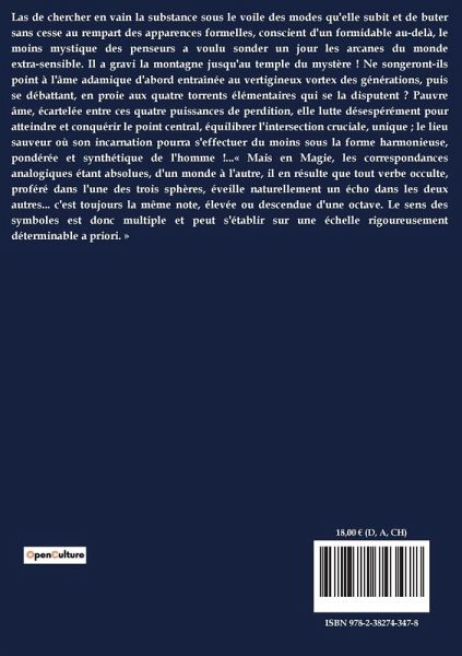 Un mystère envoûtant se déploie dans les pages d'' Au seuil du mystère ', une uvre qui nous transporte dans les méandres de l'esprit humain et les secrets de l'âme. Écrit par Stanislas de Guaita et Maurice Barrès, ce livre se situe à la croisée des chemins entre la littérature symboliste et l'exploration ésotérique. L'intrigue se déroule à la fin du XIXe siècle, une époque marquée par une fascination pour l'occulte et les sciences mystiques. Les auteurs nous plongent dans un univers où les frontières entre le réel et l'imaginaire s'estompent, créant une atmosphère à la fois intrigante et déroutante. Les personnages principaux, en quête de vérité et de compréhension, naviguent à travers des paysages mentaux et spirituels complexes. Leurs aventures sont autant de réflexions sur la condition humaine, la quête de sens et les mystères de l'existence. Ce récit symboliste explore des thèmes tels que la dualité de l'âme, la recherche de la connaissance et l'attrait du mystère. Les auteurs, par leur style poétique et évocateur, nous invitent à une introspection intérieure, à la découverte de nos propres énigmes intérieures. En développant une trame narrative fondée sur des symboles et des allégories, ce livre nous apprend à percevoir les subtilités de l'esprit humain et les complexités de la quête spirituelle. Par l'entremise de personnages évolutifs et de situations énigmatiques, nous percevons désormais mieux les nuances de la psyché humaine et les défis de la recherche de vérité. ' Au seuil du mystère ' est une invitation à un voyage intérieur, une exploration des profondeurs de l'âme qui ne manquera pas de captiver les lecteurs en quête de sens et de réflexion.