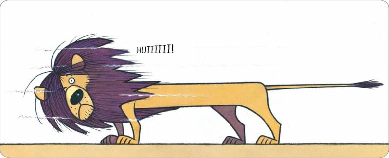 Der Löwe ist empört: die Maus hat ihn getreten und das tut sooo weeeeh! Schnell kommen die anderen Tiere angerannt und versuchen, dem Löwen zu helfen. Der Elefant pustet, das Lama versucht's mit Spucke und der Tintenfisch bietet eine tröstende Umarmung an. Aber nichts hilft, der Löwe brüllt noch immer vor Schmerz. Da kehrt die kleine Maus zum Tatort zurück und löst die Situation überraschend auf.