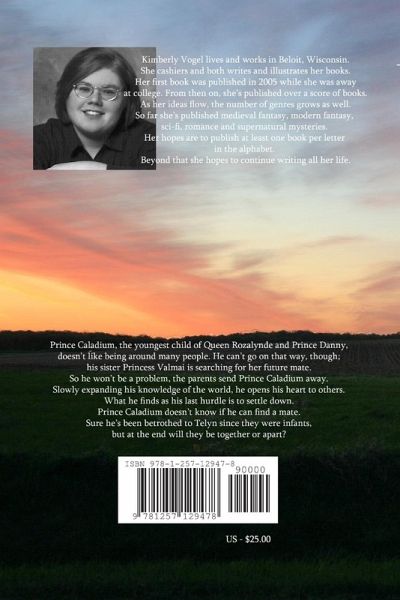 Prince Caladium, the youngest child of Queen Rozalynde and Prince Danny, doesn't like being around many people. He can't go on that way, though; his sister Princess Valmai is searching for her future mate. So he won't be a problem, the parents send Prince Caladium away. Slowly expanding his knowledge of the world, he opens his heart to others. What he finds as his last hurdle is to settle down. Prince Caladium doesn't know if he can find a mate. Sure he's been betrothed to Telyn since they were infants, but at the end will they be together or apart?