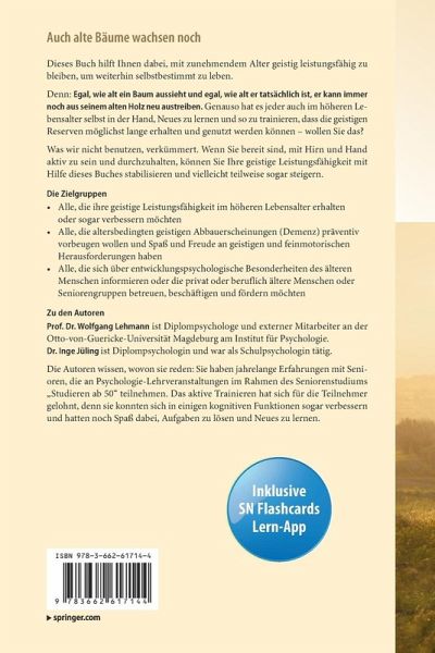 Die Autoren wissen, wovon sie reden: Sie haben jahrelange Erfahrungen mit Senioren, die an Psychologie-Lehrveranstaltungen im Rahmen des Seniorenstudiums "Studieren ab 50" teilnehmen. Das aktive Trainieren hat sich für die Teilnehmer gelohnt, denn sie konnten sich in einigen kognitiven Funktionen sogar verbessern und hatten noch Spaß dabei, Aufgaben zu lösen und Neues zu lernen.