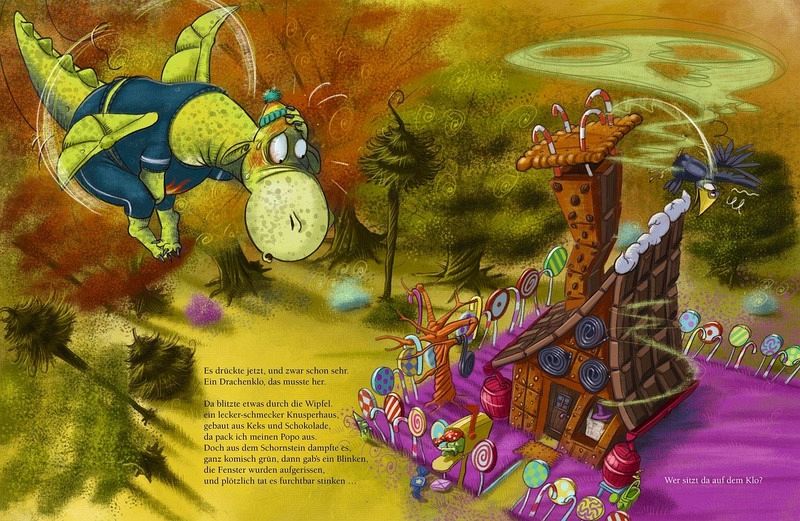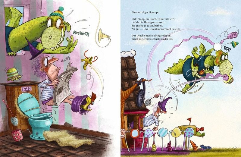 Wenn Drachen einen Haufen machen, lassen sie es furchtbar krachen! Uhhhhh! Im Zauberwald hört man ein lautes Stöhnen. Es kommt von einem Drachen. Und der muss mal - und zwar sofort! Blöd nur, dass weit und breit kein Klo in Sicht ist. Also macht der Drache sich auf die Suche nach einem geeigneten Örtchen. Doch im Knusperhäuschen bei der Hexe und beim Riesen hinterm Baum heißt es nur: Besetzt! Und selbst am Ende des Regenbogens sitzt schon ein zuckersüßer Einhornpo auf dem Töpfchen. So ein Mist! Doch da entdeckt der Drache ein kleines Häuschen am Horizont - mit einem Herz in der Tür. Ob das die Rettung ist?