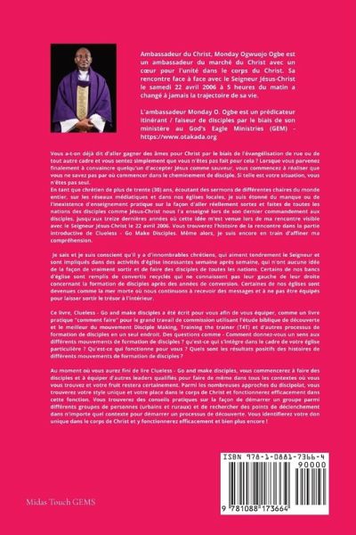 Vous a-t-on déjà dit d'aller gagner des âmes pour Christ par le biais de l'évangélisation de rue ou de tout autre cadre et vous sentez simplement que vous n'êtes pas fait pour cela ? Lorsque vous parvenez finalement à convaincre quelqu'un d'accepter Jésus comme sauveur, vous commencez à réaliser que vous ne savez pas par où commencer dans le cheminement de disciple. Si telle est votre situation, vous n'êtes pas seul.En tant que chrétien de plus de trente (30) ans, écoutant des sermons de différentes chaires du monde entier, sur les réseaux médiatiques et dans nos églises locales, je suis étonné du manque ou de l'inexistence d'un enseignement pratique sur la façon d'aller réellement sortir et faire des disciples de toutes les nations comme Jésus-Christ nous l'a enseigné lors de son dernier commandement aux disciples, jusqu'aux treize dernières années où cette idée m'est venue lors de ma rencontre visible avec le Seigneur Jésus-Christ le 22 avril 2006. Vous trouverez l'histoire de la rencontre dans la partie introductive de Clueless - Go Make Disciples. Même alors, je suis encore en train d'affiner ma compréhension. Je sais et je suis conscient qu'il y a d'innombrables chrétiens, qui aiment tendrement le Seigneur et sont impliqués dans des activités d'église incessantes semaine après semaine, qui n'ont aucune idée de la façon de vraiment sortir et de faire des disciples de toutes les nations. Certains de nos bancs d'église sont remplis de convertis recyclés qui ne connaissent pas leur gauche de leur droite concernant la formation de disciples après des années de conversion. Certaines de nos églises sont devenues comme la mer morte où nous continuons à recevoir des messages et à ne pas être équipés pour laisser sortir le trésor à l'intérieur.Ce livre, Clueless - Go and make disciples a été écrit pour vous afin de vous équiper, comme un livre pratique "comment faire" pour le grand travail de commission utilisant l'étude biblique de découverte et le meilleur du mouvement Disciple Making, Training the trainer (T4T) et d'autres processus de formation de disciples en un seul endroit. Des questions comme - Comment donnez-vous un sens aux différents mouvements de formation de disciples ? qu'est-ce qui s'intègre dans le cadre de votre église particulière ? Qu'est-ce qui fonctionne pour vous ? Quels sont les résultats positifs des histoires de différents mouvements de formation de disciples ?Au moment où vous aurez fini de lire Clueless - Allez et faites des disciples, vous commencerez à faire des disciples et à équiper d'autres leaders qualifiés pour faire de même dans tous les contextes où vous vous trouvez et votre fruit restera certainement. Parmi les nombreuses approches du discipolat, vous trouverez votre style unique et votre place dans le corps de Christ et fonctionnerez efficacement dans cette fonction. Vous trouverez des conseils pratiques sur la façon de démarrer un groupe parmi différents groupes de personnes (urbains et ruraux) et de rechercher des points de déclenchement dans n'importe quel contexte pour démarrer un processus de découverte. Vous identifierez votre don unique dans le corps de Christ et y fonctionnerez efficacement et bien plus encore !