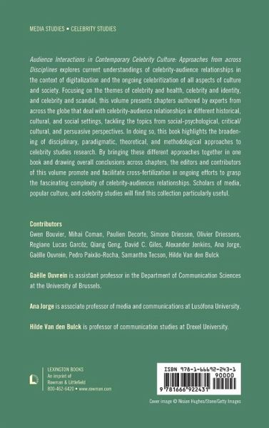 Introduction: Celebrity Studies Coming of Age by Gaëlle Ouvrein, Ana Jorge, and Hilde Van den Bulck Part I: Celebrity and Health Chapter 1: Analyzing Digital Audiences: A Case Study of YouTuber Depression Videos by David C. Giles Chapter 2: Vegan Influencers Providing Audience Safe Spaces? Exploring Two-Way Interactions and Reciprocity on Instagram by Paulien Decorte and Gaëlle Ouvrein Part II: Celebrity and Identity Chapter 3: Celebrity Activism as Discursive Representation: A Case Study of the Brazilian Singer Daniela Mercury and LGBTQ Rights in Brazil by Pedro Paixão-Rocha and Regiane Lucas Garcêz Chapter 4: Commodifying the Biracial: Zendaya from Disney Childhood to HBO Adulthood by Samantha Tecson Chapter 5: Audience Relations to African American Athletes' Activism from a Diachronic, Media Ecology and Celebrity Apparatus Perspective: Tommie Smith, John Carlos and Colin Kaepernick by Alexander Jenkins and Hilde Van den Bulck Part III: Celebrity and Scandal/Cancel Culture Chapter 6: Bad Dreams Are Only Dreams, or Aren't They? Examining How Dutch Fans of Marco Borsato Negotiate Their Fandom After His Cancellation by Simone Driessen Chapter 7: How Networked Publics create a Sense of Community and Mobilization on Twitter: The Case of Supporting/Hating Johnny Depp versus Amber Heard by Gwen Bouvier and Qian Geng Chapter 8: Celebrity-Priests and their Followers' Online Communities: From Adoration to Condemnation by Mihai Coman Conclusion: Toward a Multidimensional Framework for Analysing Audiences and their Relationships with Celebrities or Influencers by Olivier Driessens
