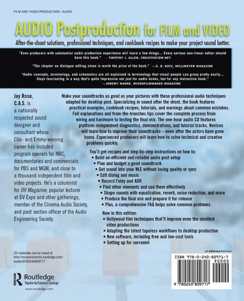FAQs, full explanations, and from-the-trenches tips address the complete range of processes from wiring and hardware to testing the final mix. Novices will learn how to improve their soundtrack--even after the actors have gone home. Experienced producers will learn how to solve technical and creative problems quickly.