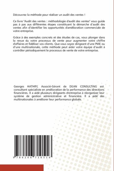 Découvrez la méthode pour réaliser un audit des ventes !Ce livre "Audit des ventes : méthodologie d'audit des ventes" vous guide pas à pas aux différentes étapes constituant la démarche d'audit des ventes afin d'identifier les opportunités d'amélioration commerciale de votre entreprise.Grâce à des exemples concrets et des études de cas, vous plonger dans la revue du votre processus de vente pour augmenter votre chiffre d'affaires et fidéliser vos clients. Que vous soyez dirigeant d'une PME ou d'une multinationale, cette méthode peut aider votre équipe d'audit à contrôler périodiquement le processus de vente de votre entreprise.