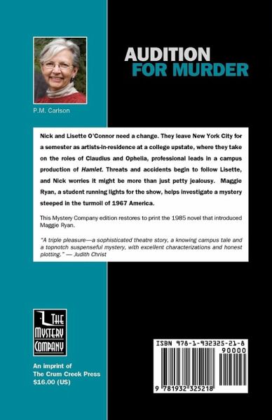 Nick and Lisette O'Connor need a change. They leave New York City for a semester as artists-in-residence at a college upstate, where they take on the roles of Claudius and Ophelia, professional leads in a campus production of HAMLET. Threats and accidents begin to follow Lisette, and Nick worries it might be more than just petty jealousy. Maggie Ryan, a student running lights for the show, helps investigate a mystery steeped in the turmoil of 1967 America.