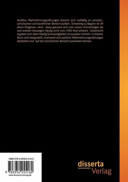 Auditive Wahrnehmungsstörungen können sich vielfältig im privaten, schulischen und beruflichen Bereich äußern. Schwierig zu Beginn ist oft deren Diagnose, denn diese grenzen sich vom reinen Hörvermögen ab und werden deswegen häufig nicht vom HNO-Arzt erkannt. Unbemerkt ergeben sich dann häufig Schwierigkeiten im sozialen Umfeld. In diesem Buch wird dargestellt, inwieweit sich auditive Wahrnehmungsstörungen darstellen und auf den schulischen Bereich auswirken können.