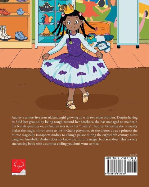 Audrey is almost five years old and a girl growing up with two older brothers. Despite having to hold her ground by being tough around her brothers, she has managed to maintain her female qualities or, as Audrey sees it, as her "royalty". Audrey, believing she is royalty makes the magic mirror come to life in Gran's playroom. As she dresses up as a princess the mirror magically transports Audrey to a king's palace during the eighteenth century as his daughter Annabella. Audrey does not know the mirror is magic, but Gran does. This is a very enchanting book with a surprise ending you don't want to miss!