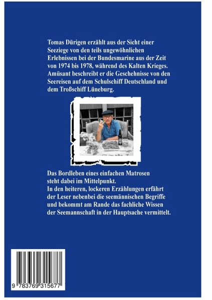 Tomas Dürigen erzählt aus der Sicht einer Seeziege von den teils ungewöhnlichen Erlebnissen bei der Bundesmarine aus der Zeit von 1974 bis 1978, während des Kalten Krieges. Amüsant beschreibt er die Geschehnisse von den Seereisen auf dem Schulschiff Deutschland und dem Troßschiff Lüneburg. Das Bordleben eines einfachen Matrosen steht dabei im Mittelpunkt. In den heiteren, lockeren Erzählungen erfährt der Leser nebenbei die seemännischen Begriffe und bekommt am Rande das fachliche Wissen der Seemannschaft in der Hauptsache vermittelt.