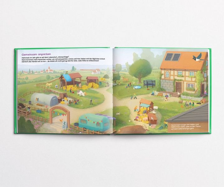 Wie sieht eigentlich der Alltag auf dem Lebenshof aus? Woher kommt Schweinchen Nura? Mögen Kühe den Schnee? Wie sprechen Pferde miteinander? Und was passiert nachts, wenn die Menschen schlafen? Komm mit und entdecke zusammen mit den Menschenkindern Cleo und Anton eine Welt, in der die Tiere einfach sie selbst sein dürfen.